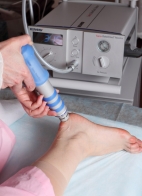 Кинетическая энергия ударной волны, созданная сжатым воздухом, переносится с помощью специального аппликатора. Глубина проникновения варьирует от 4 до 7 см, в зависимости от насадки.