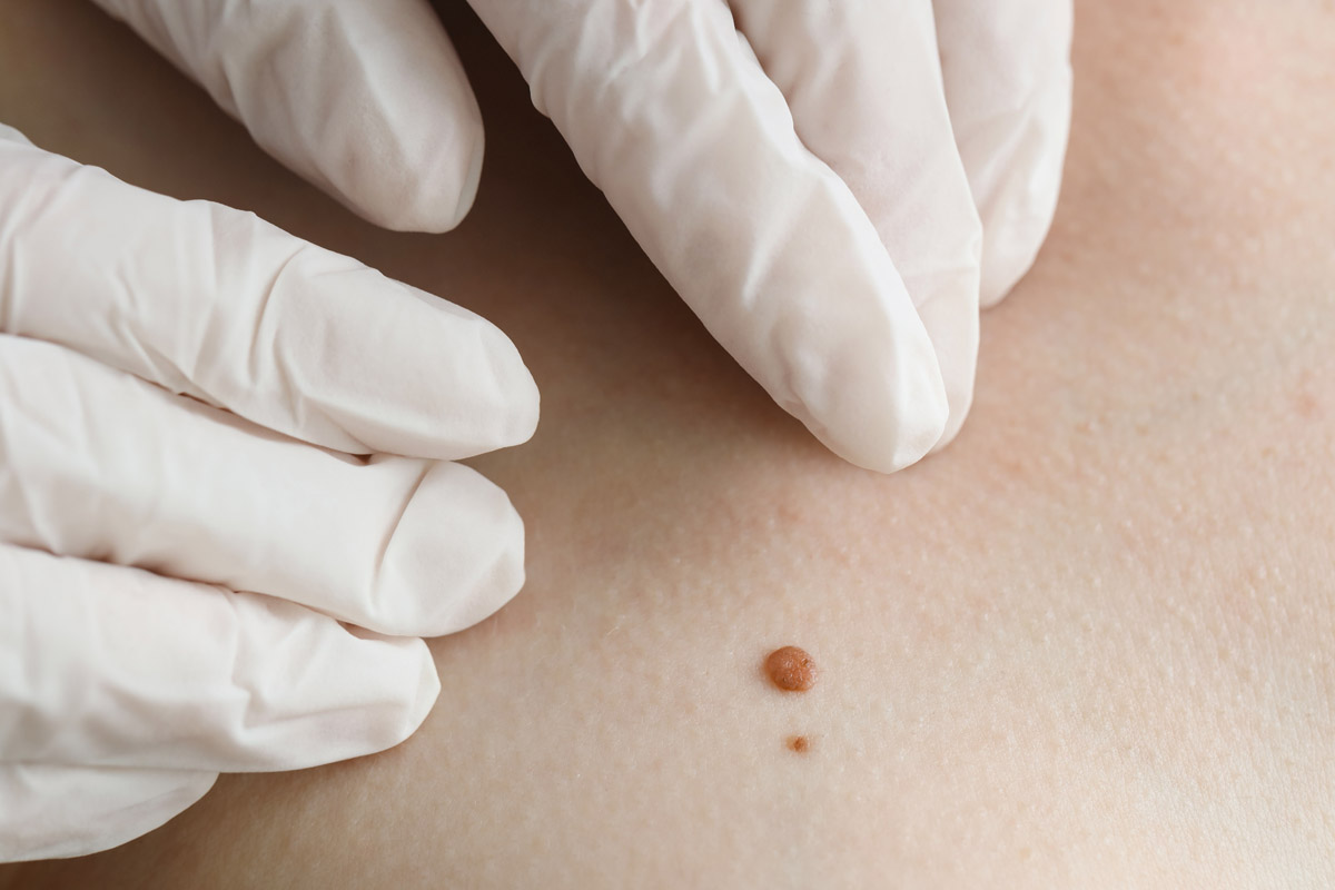осматривает, ощупывает кожное новообразование;