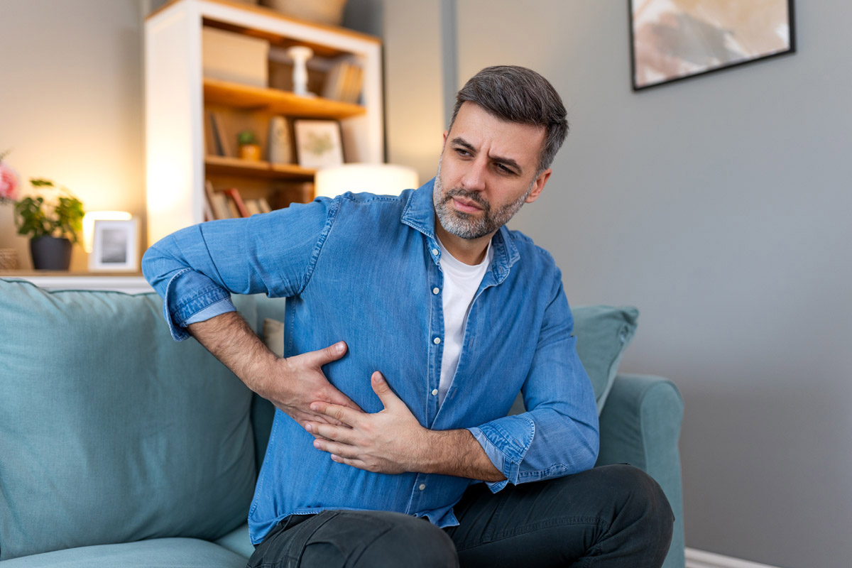 • Боль с правой стороны под ребрами.