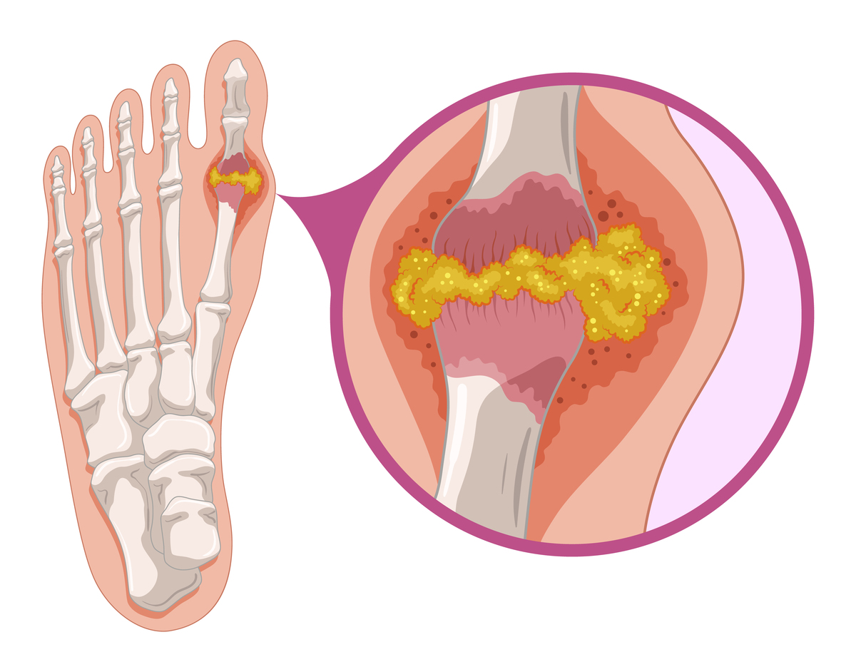 Клиника острого подагрического приступа выражена ярко. Обычно внезапная резкая боль появляется ночью. Чаще она локализуется в первом плюснефаланговом суставе. Помимо боли, наблюдаются:
