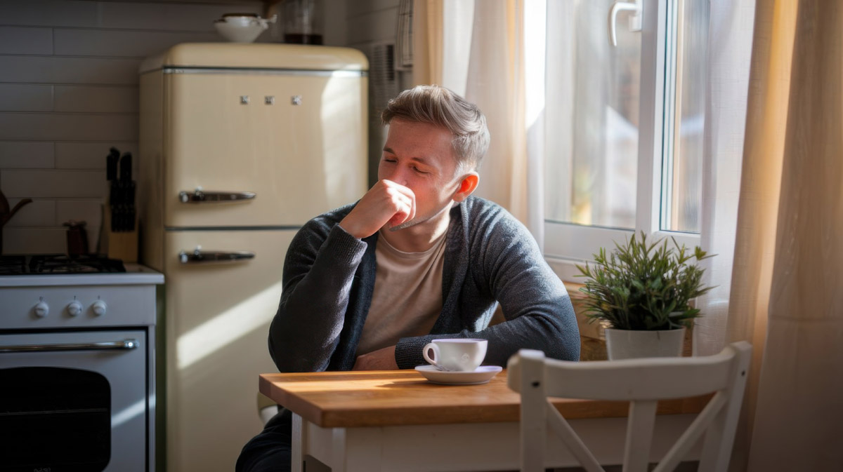 Кашель по утрам у взрослых — может быть следствием раздражения дыхательных путей, рефлюкса или аллергии. Усиливается после пробуждения и сопровождается сухостью и першением. Без контроля за микроклиматом и питанием возможны постоянные приступы и дискомфорт. Симптомы усиливаются при курении и загрязнении воздуха. Это состояние может сопровождаться головной болью и утомлением. Со временем возможны затяжные эпизоды и снижение дыхательной функции.