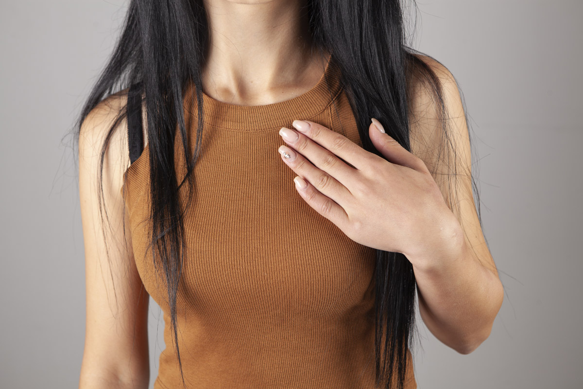 изменением формы груди;