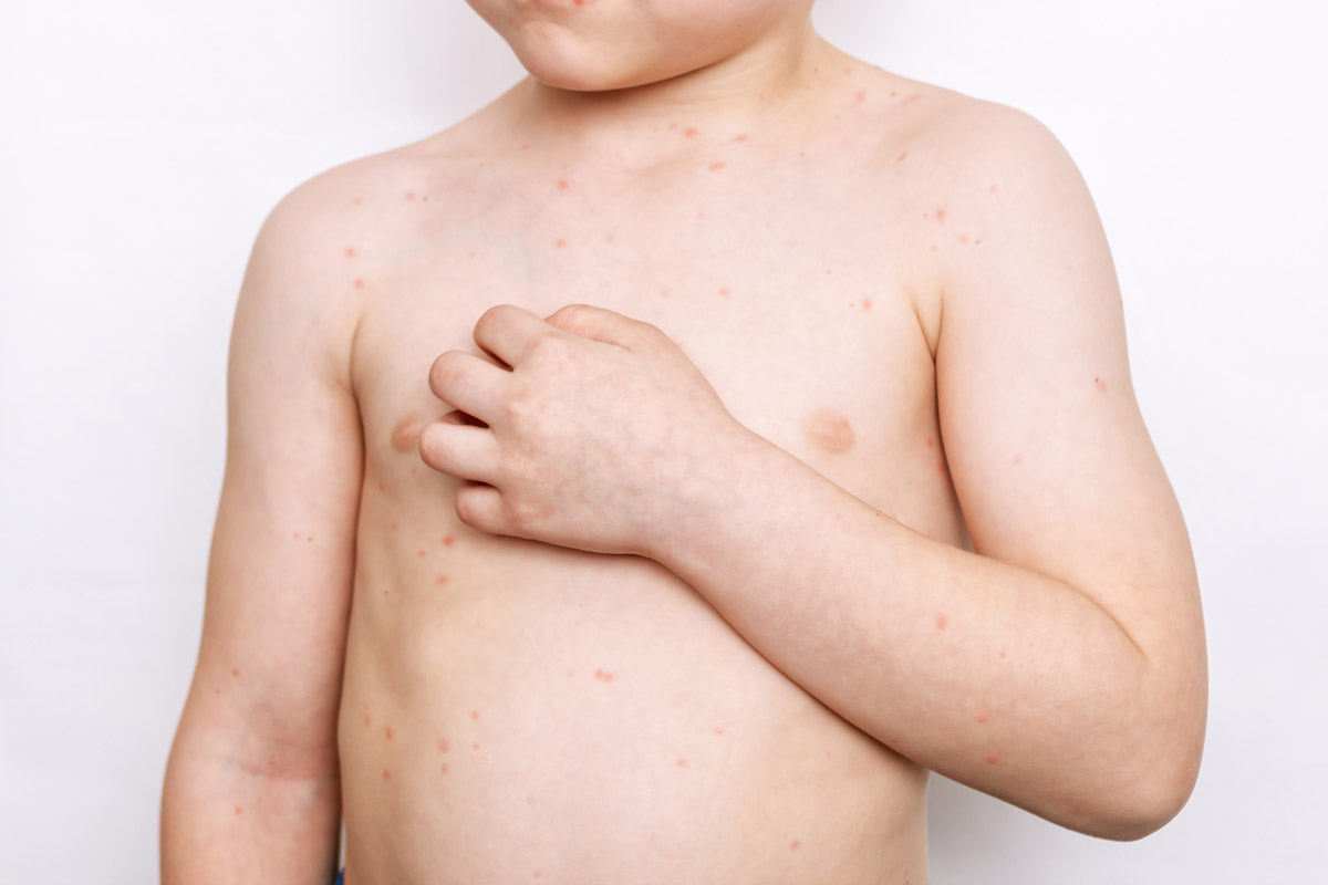 Если появление прыщей вызвано аллергией, также возможно повышение температуры тела. Такую реакцию иммунной системы могут спровоцировать не только продукты питания или шерсть домашних животных, но и укусы насекомых, и даже стиральные порошки и кондиционеры. Высыпания, связанные с развитием кожных паразитов, практически всегда сопровождаются зудом. Если дополнительные симптомы отсутствуют, мелкая сыпь у ребенка на груди может быть вызвана пеленочным дерматитом или потницей. Если появление прыщей вызвано инфекцией, наблюдается также ряд других симптомов: повышение температуры, кашель, боли в горле и животе, отказ малыша от пищи. Красная сыпь на груди у ребенка наблюдается при ветряной оспе, кори, краснухе и даже скарлатине.